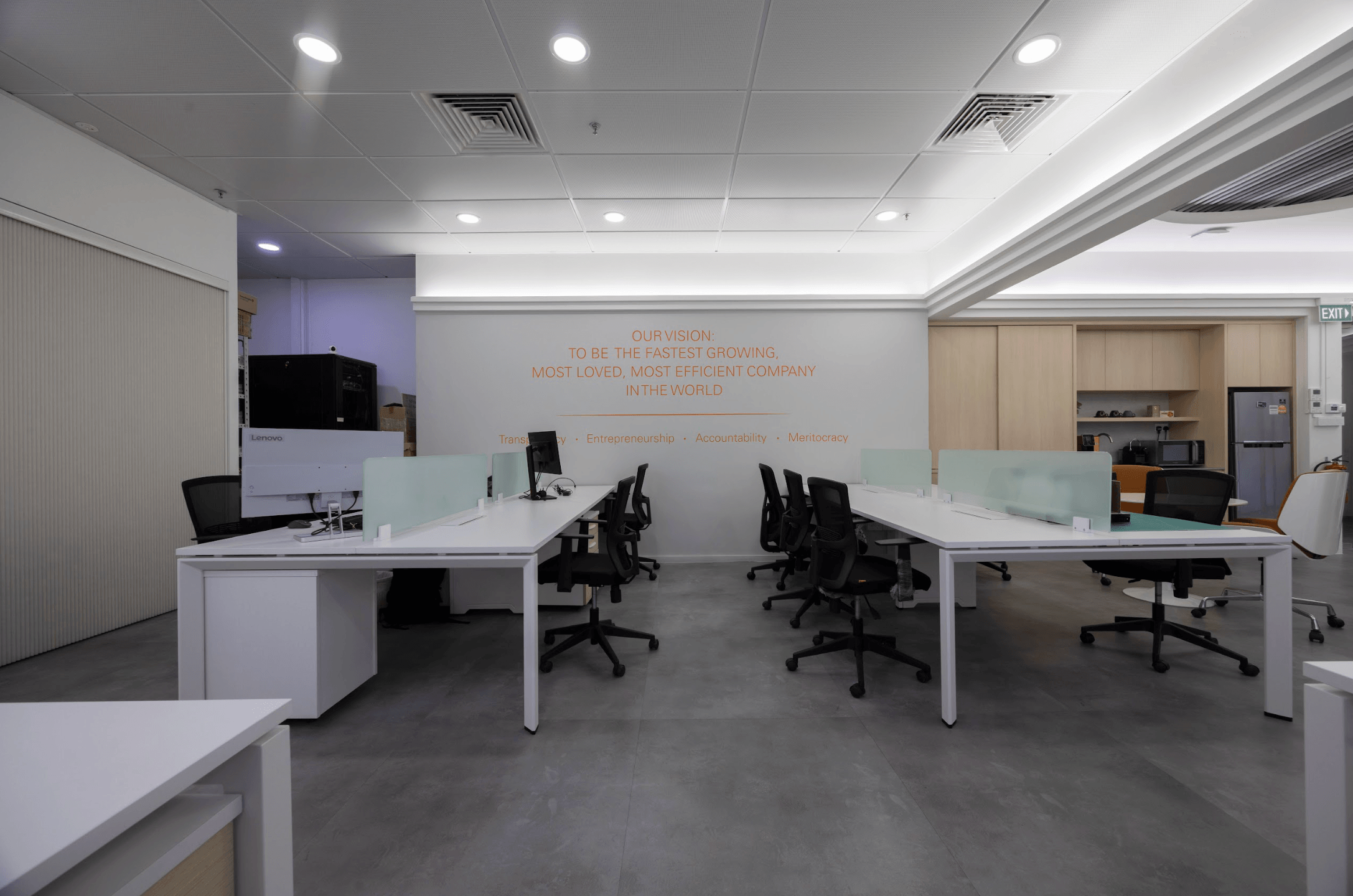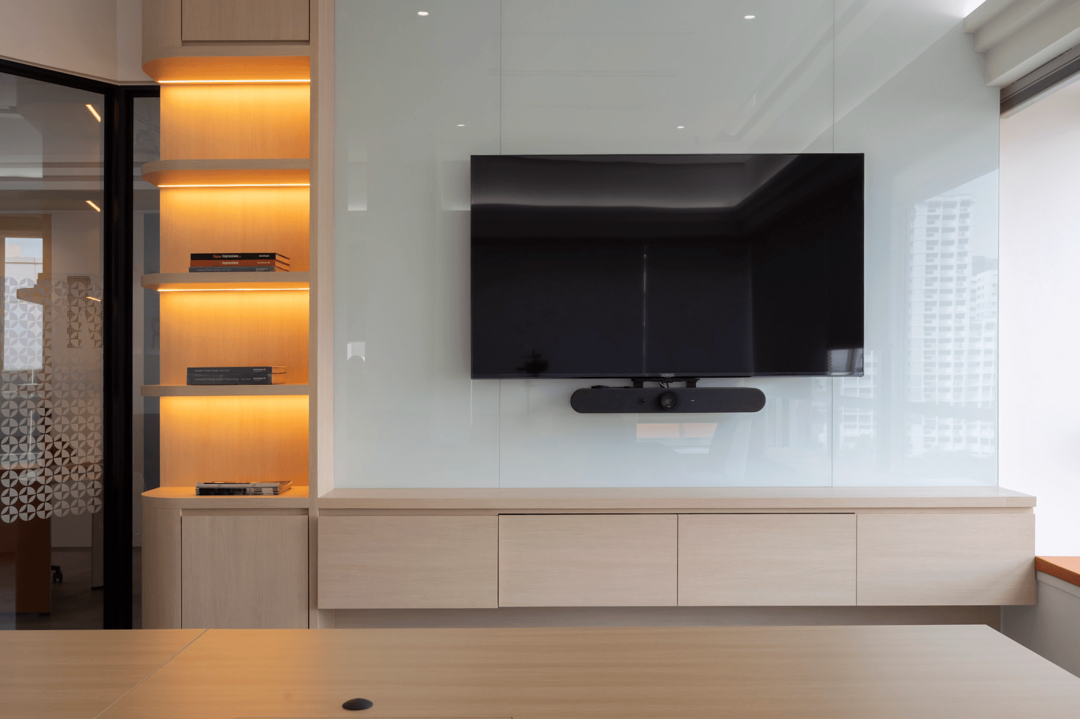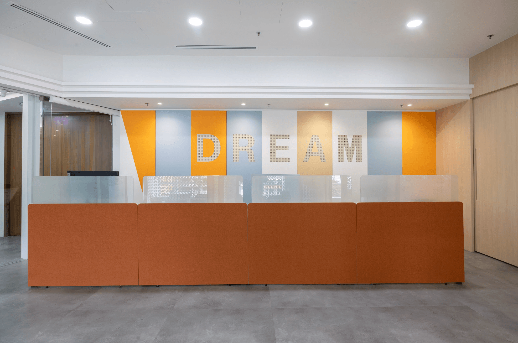 The redesign of Hunter Douglas Singapore’s office incorporates the company’s corporate colours and brand vision into the interior to create a functional and welcoming workspace. Beyond aesthetics, the layout was reconfigured to improve the overall workflow of the space, allowing for smoother movement, better collaboration, and a more efficient working environment.